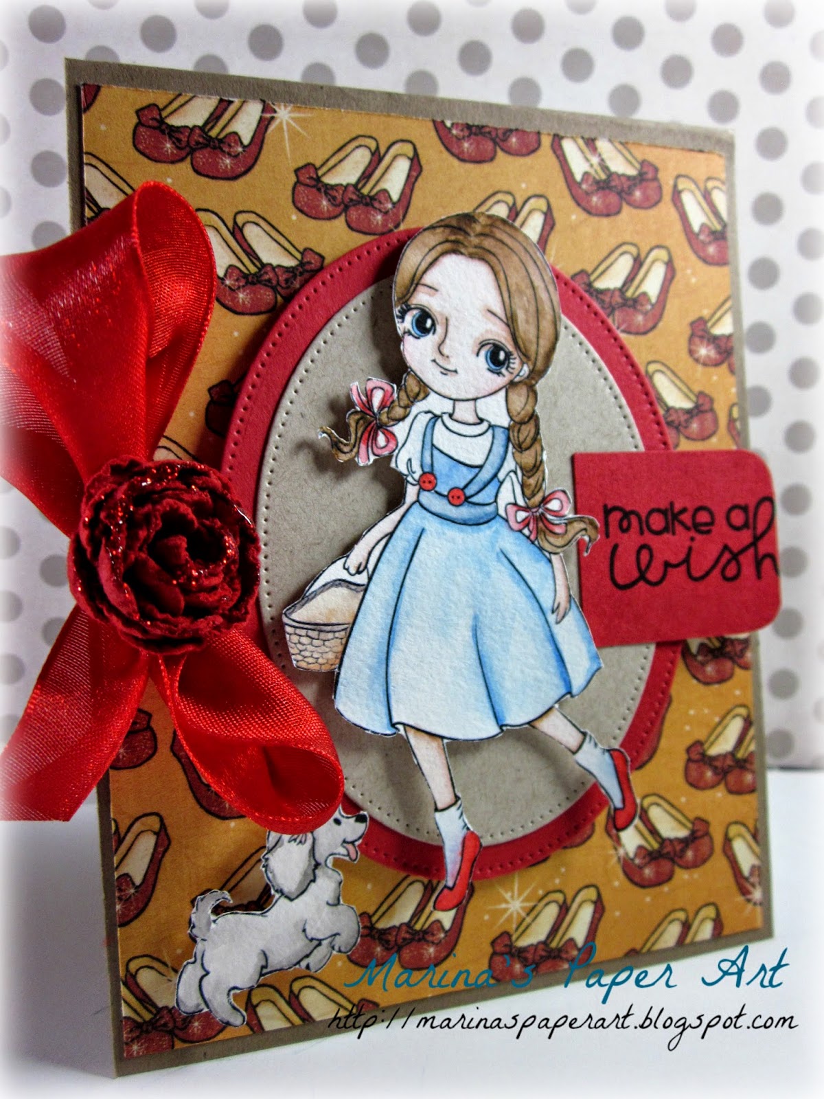 Then I adhered the image to two stacked square die cuts, with some foam adhesive. Then added some embellishments.